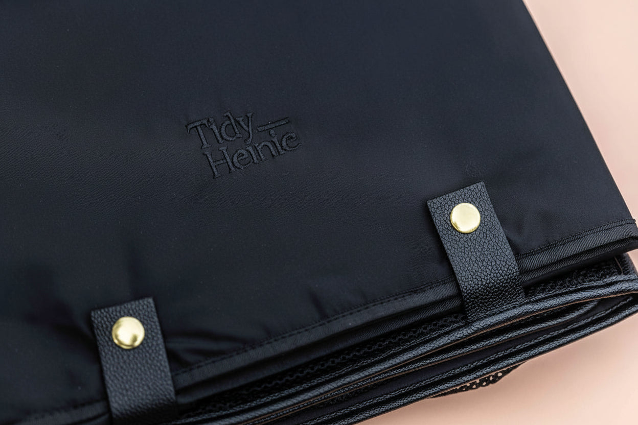 With 6 different sized pockets + a bonus one behind the change mat, there are thousands of ways you can pack your Tidy Heinie®.